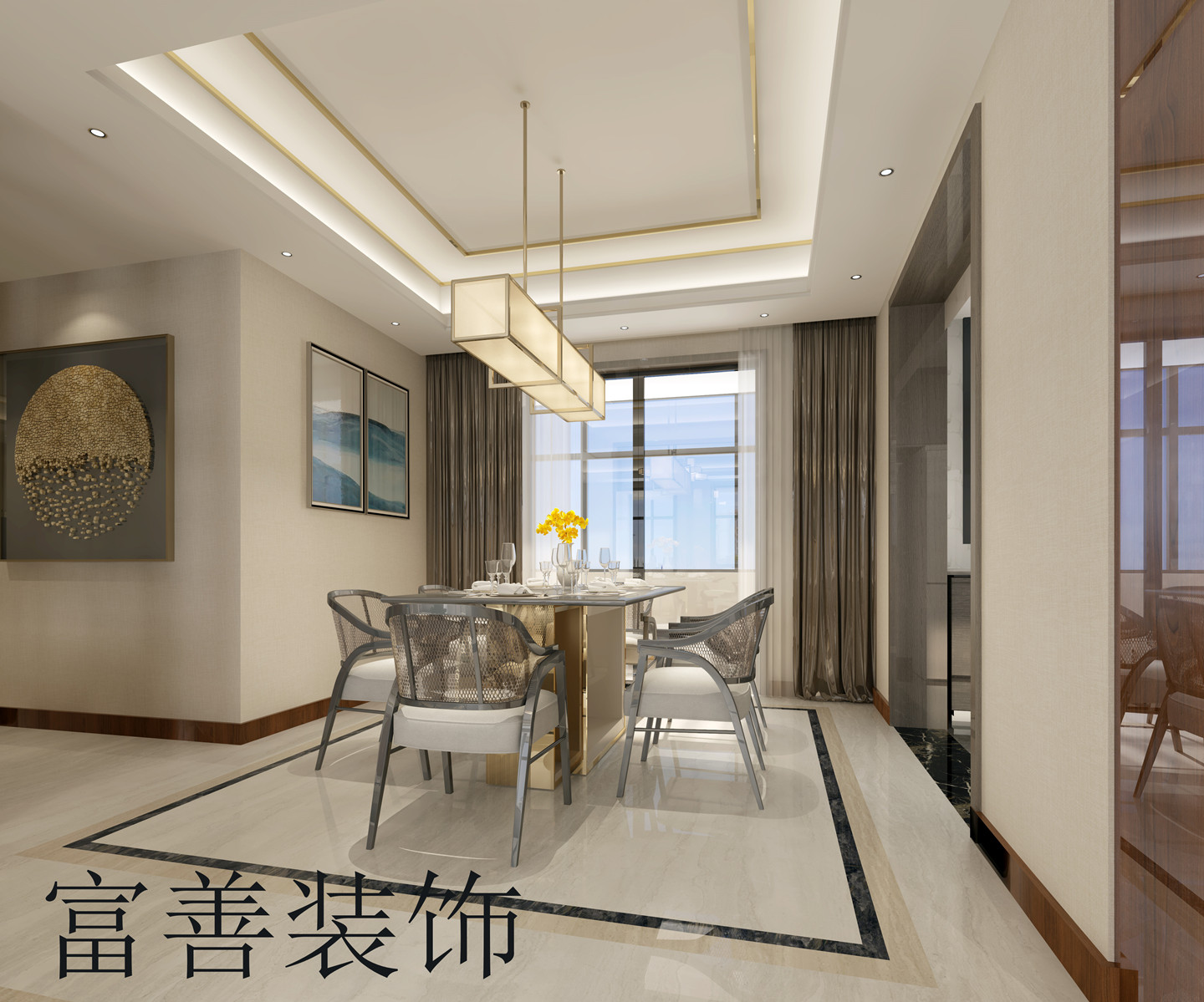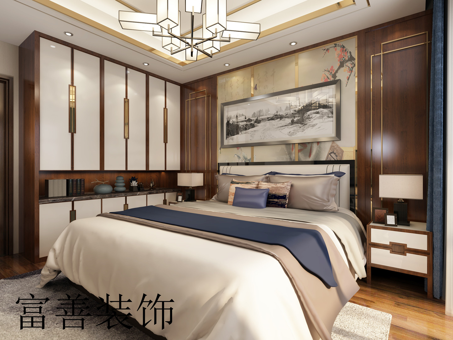 ??诟簧蒲b飾通過與客戶充分的溝通,了解客戶的實(shí)際需求后,根據(jù)新中式風(fēng)格的設(shè)計(jì)思想,為客戶設(shè)計(jì)出具有中式元素和現(xiàn)代簡(jiǎn)約元素相融合的平面效果圖;如下: